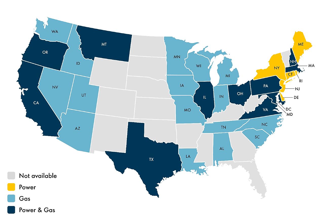 We offer supply solutions across the U.S. to power your business. Shell Energy works with the utility providers to deliver gas and power to our customers in deregulated markets. Click on a colored state or use the filter drop down to see the gas and power utilities listed below.